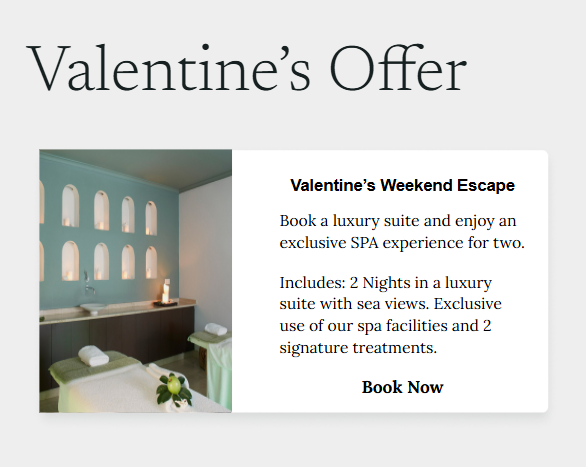 - “Spa hotel Valentine’s offer”